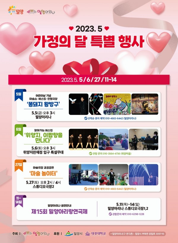 마술 놀이터 (05/27 ~ 05/27) 페이지 정보 작성자 아리나장 작성일23-04-27 16:48 조회920회 댓글0건 이전글 다음글 목록 본문 남종호마술사 외 1명이 펼치는 마술체험과 놀이 그리고 마술쇼가 50분간 펼쳐집니다. 5.27(토) 2시, 4시 공연 입니다. 밀양아리나 스튜디오극장2 각 공연 95명 선착순 문자예약제 입니다. 댓글목록 등록된 댓글이 없습니다. 이전글 다음글 목록